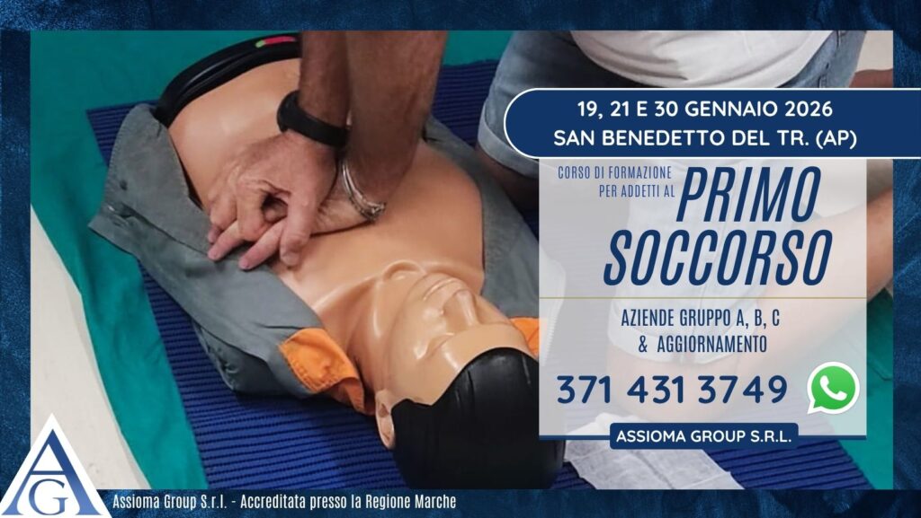 Assioma Group S.r.l. accreditata per la formazione presso la Regione Marche, organizza corsi di Primo Soccorso e aggiornamento, in conformità alle indicazione del Decreto Ministeriale n.388/03