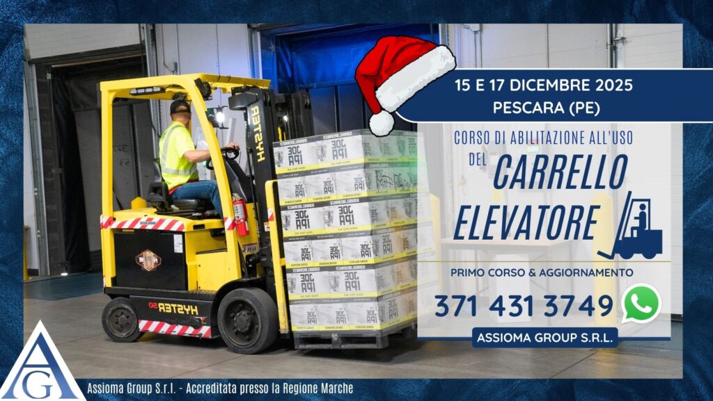 15 e 17 dicembre 2025 – “Patentino” del muletto – Pescara (PE) a soli 140 euro (IVA inclusa solo per privati)