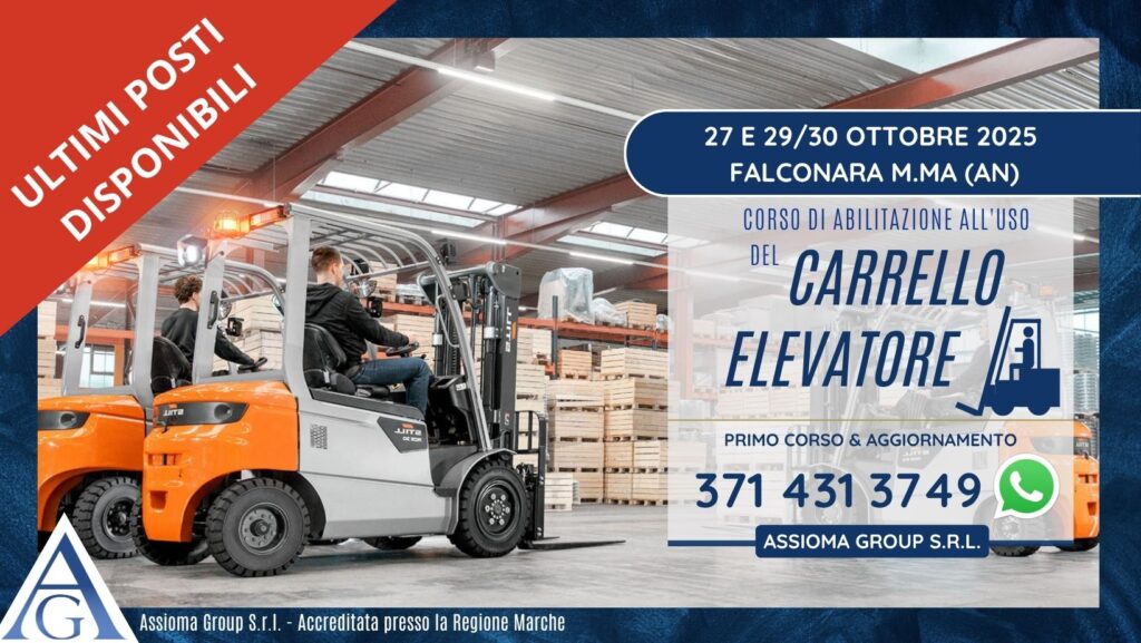 27 e 29/30 ottobre 2025 – “Patentino” del muletto – Falconara M.ma (AN) a soli 140 euro (IVA inclusa solo per privati)