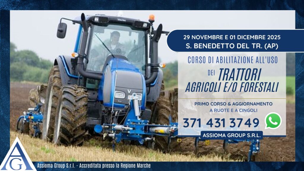 29 novembre e 01 dicembre 2025 – “Patentino” trattori agricoli e/o forestali- San Benedetto del Tronto (AP)